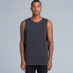 Regular fit Sleeveless tank, raw armhole edges, extra long body Light weight, 150 GSM, 34-singles 100% combed cotton (marles 15% polyester) Neck ribbing, double needle bottom hem, preshrunk to minimise shrinkage