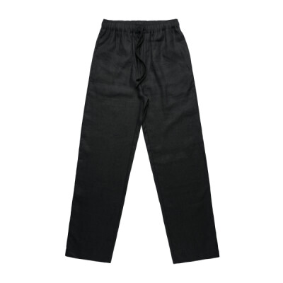 Relaxed fit Light weight, 215 GSM 100% Linen Wide leg, full length, elasticated waist, tonal draw cord, side seam pockets.