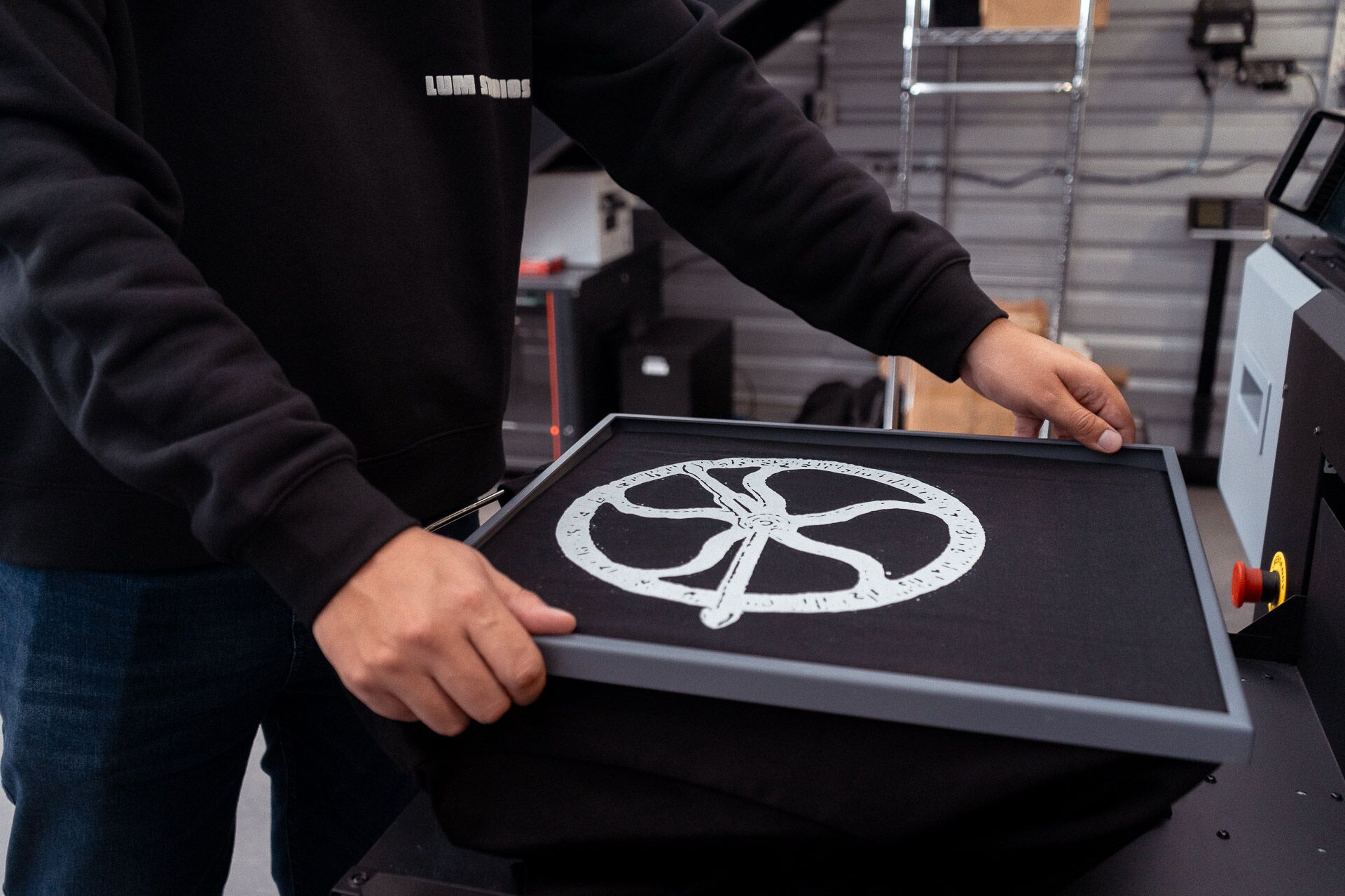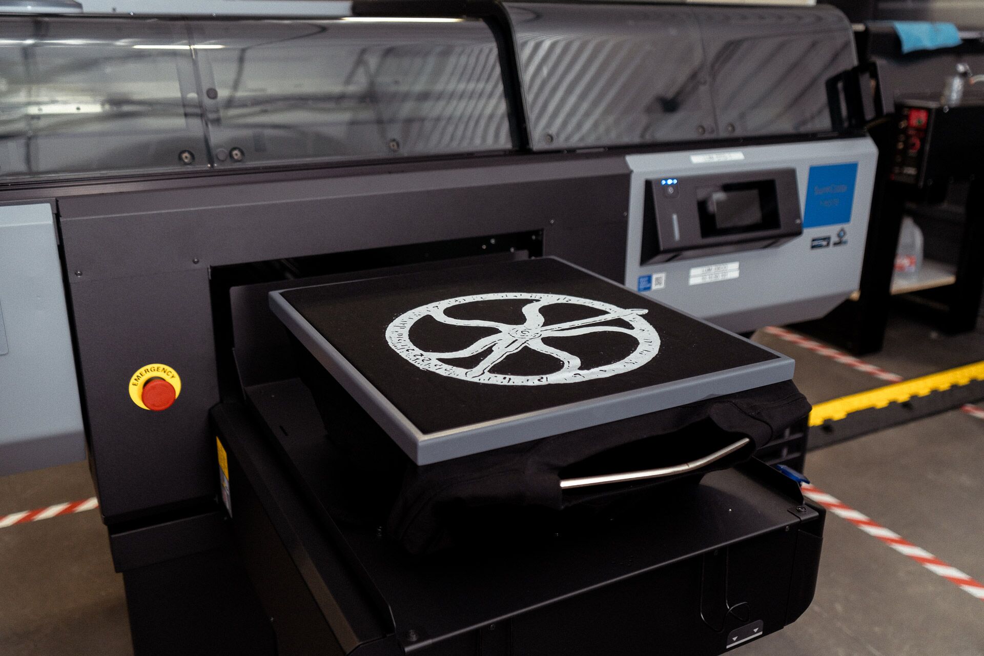 Innovative method of directly applying water-based ink onto fabric, offering unparalleled detail and vibrancy; perfect for small batch productions, thus reducing fashion overproduction and waste. No MOQs or color limitations.